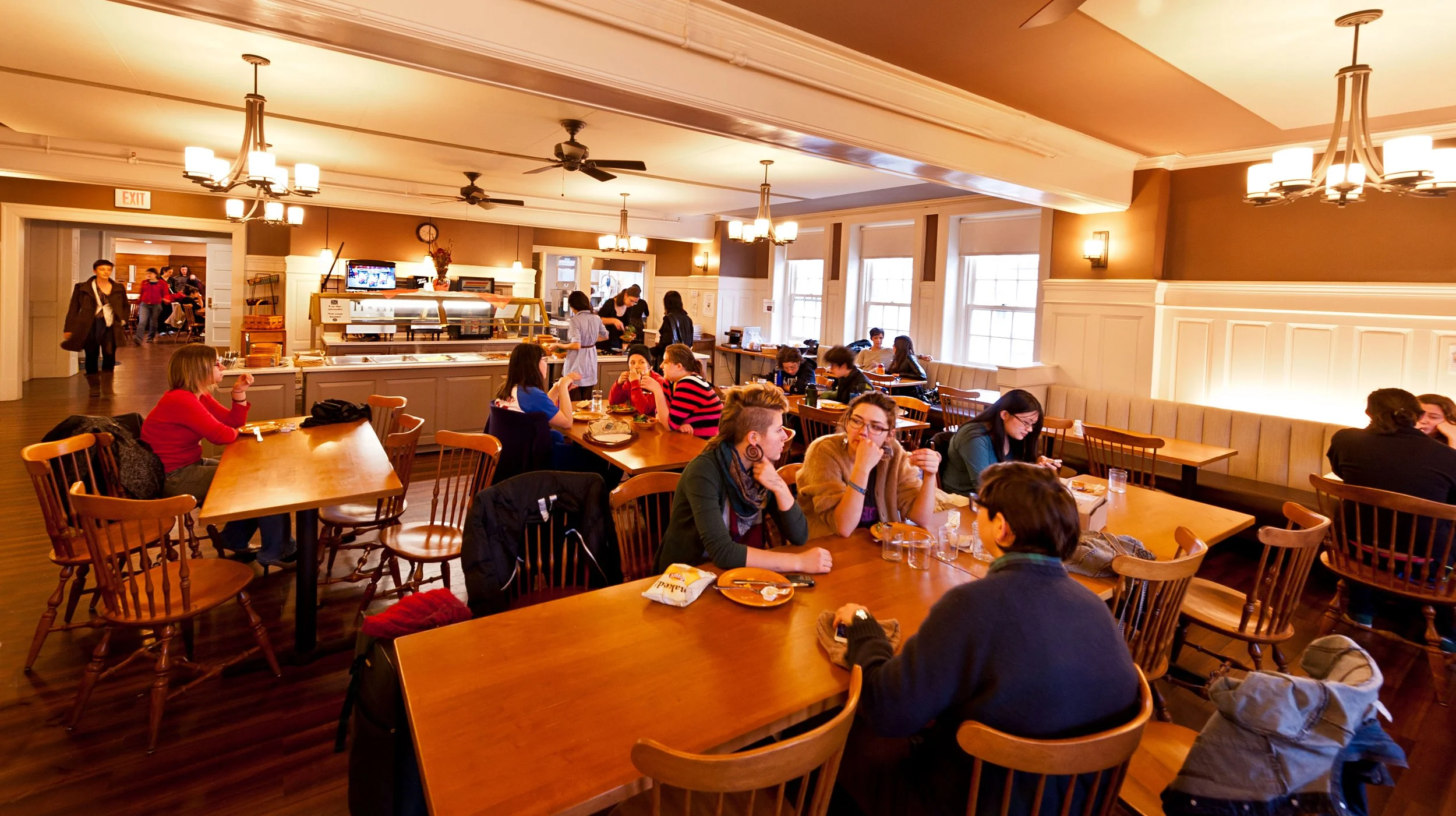 Bonham & Douglas collaborated closely with Dining Services and the students of Gillette House to craft a fresh yet classic color scheme that breathes new life into the space. The design thoughtfully incorporates a variety of seating options for flexibility and comfort for all users. The redesign enhances the aesthetic appeal and significantly improves the functionality of the space, making it more efficient and user-friendly for staff members and students.